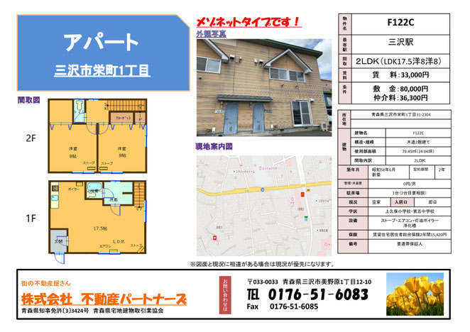 〒033-0033 青森県三沢市美野原1丁目12-10
